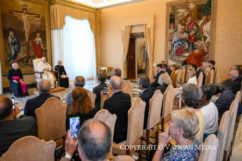 I am happy to receive you in this act of faith: you will return to your daily commitments strengthened in hope, more firmly established to labor for the building of a world more just, more humane, more fraternal, which can only be a world ever more imbued with the Gospel. In the face of the various forms of deviation that our Western societies are experiencing, we Christians can do no better than to turn to Christ and to ask His help in the exercise of our responsibilities.